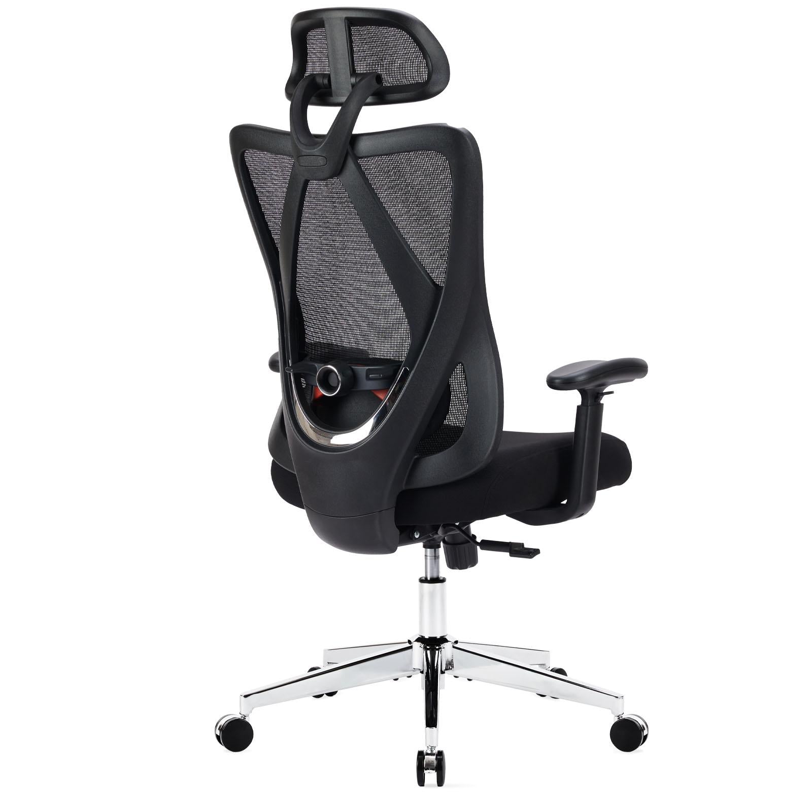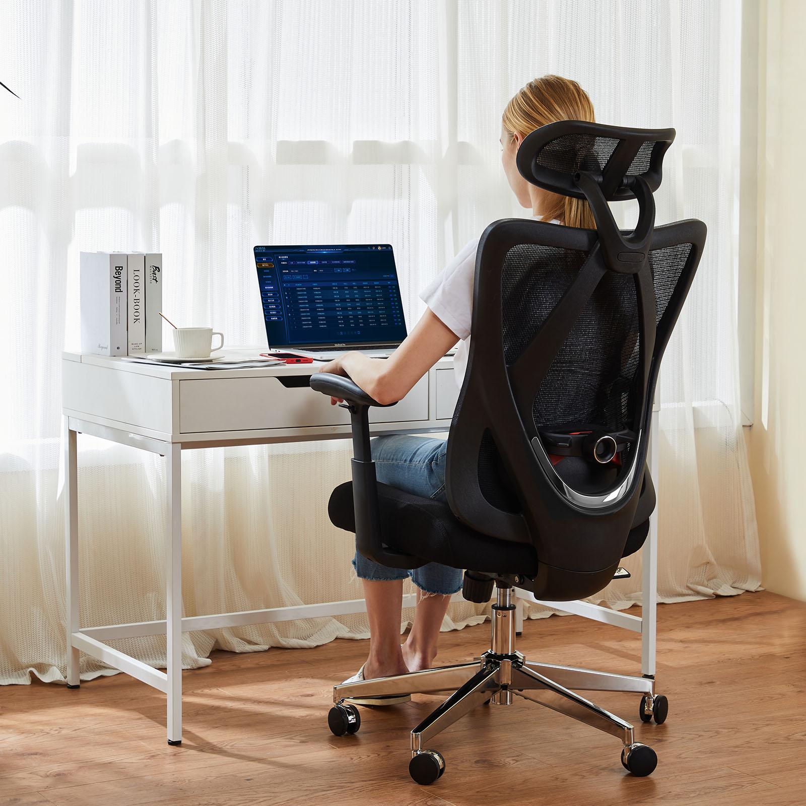【Ergonomic Chair】The office chair is ergonomic design, according to the four curvature degrees of the human spine, the natural curve and posture of the human body with "S" shaped chair back design to present, delay the excessive fatigue of the spine, provide you with a comfortable office experience, relieve the fatigue caused by sitting for a long time. 【Multi-Function Adjustment】This high back mesh office chair has a height adjustment range of 3.39 inches, and the adjustment angle of the back is 90°-135°, which easily fits any office sitting position, make you feel relax. Meanwhile, the 45° reversible headrest and the rotatable adjustable lumbar pillow provide good support for your cervical spine. 【Backrest & Headrest】The computer desk chair customize the angle you want for your head and waist support. The adjustable backrest design is a perfect solution for keeping your shoulder in the right position and relaxing your vertebra. The headrest can be lifted and rotated to find the best position for your neck, so that your whole body is completely relaxed. 【High Quality】This home office chair is equipped with a high quality Class 3 gas lift that has passed the BIFMA Durability Test and can withstand up to 275lbs, high density mesh material for backrest frame guaranteeing the safety and stability of the chair. Also the cushion is made of thickened 4-inch sponge material, provides enough padding and support to keep you comfortable. 【Assemble Easily】The executive office chair is equipped with all the accessories, installation tools to make the installation more convenient, which can finish within 20 minutes. We also have uploaded the installation video on the product page for your reference and Our professional customer service team will reply to you within 24 hours.