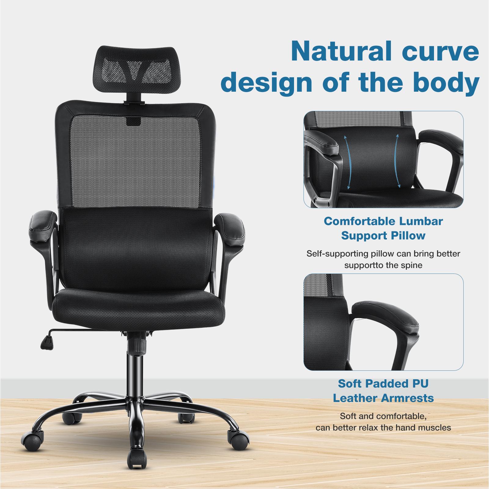 【Ergonomic Design】 - This ergonomic office chair with adjustable headrest and lumbar support is deigned to fit your body curve and ensure you to sit comfortably. The computer task chair can support up to 270 pounds.