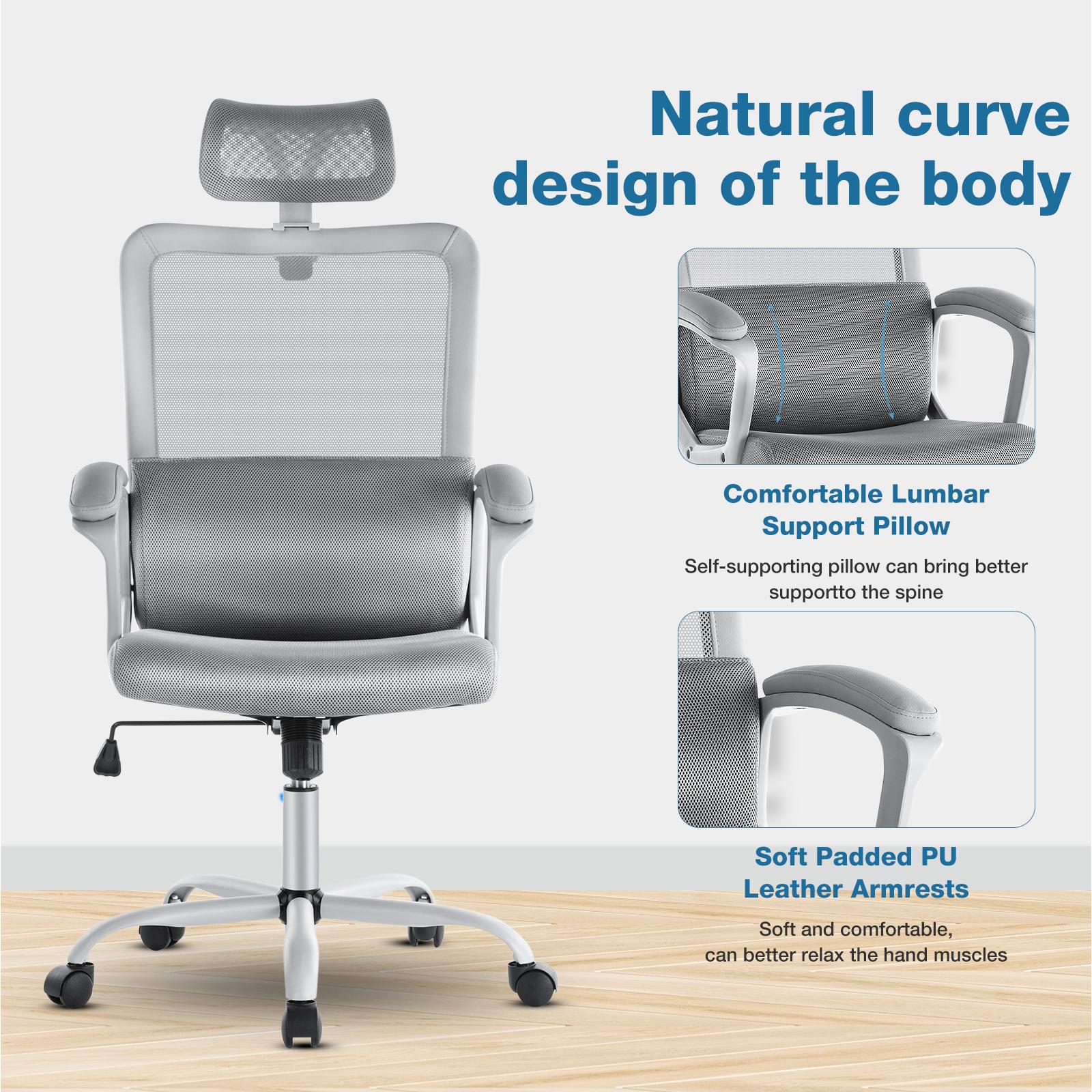 【Ergonomic Design】 - This ergonomic office chair with adjustable headrest and lumbar support is deigned to fit your body curve and ensure you to sit comfortably. The computer task chair can support up to 270 pounds.
